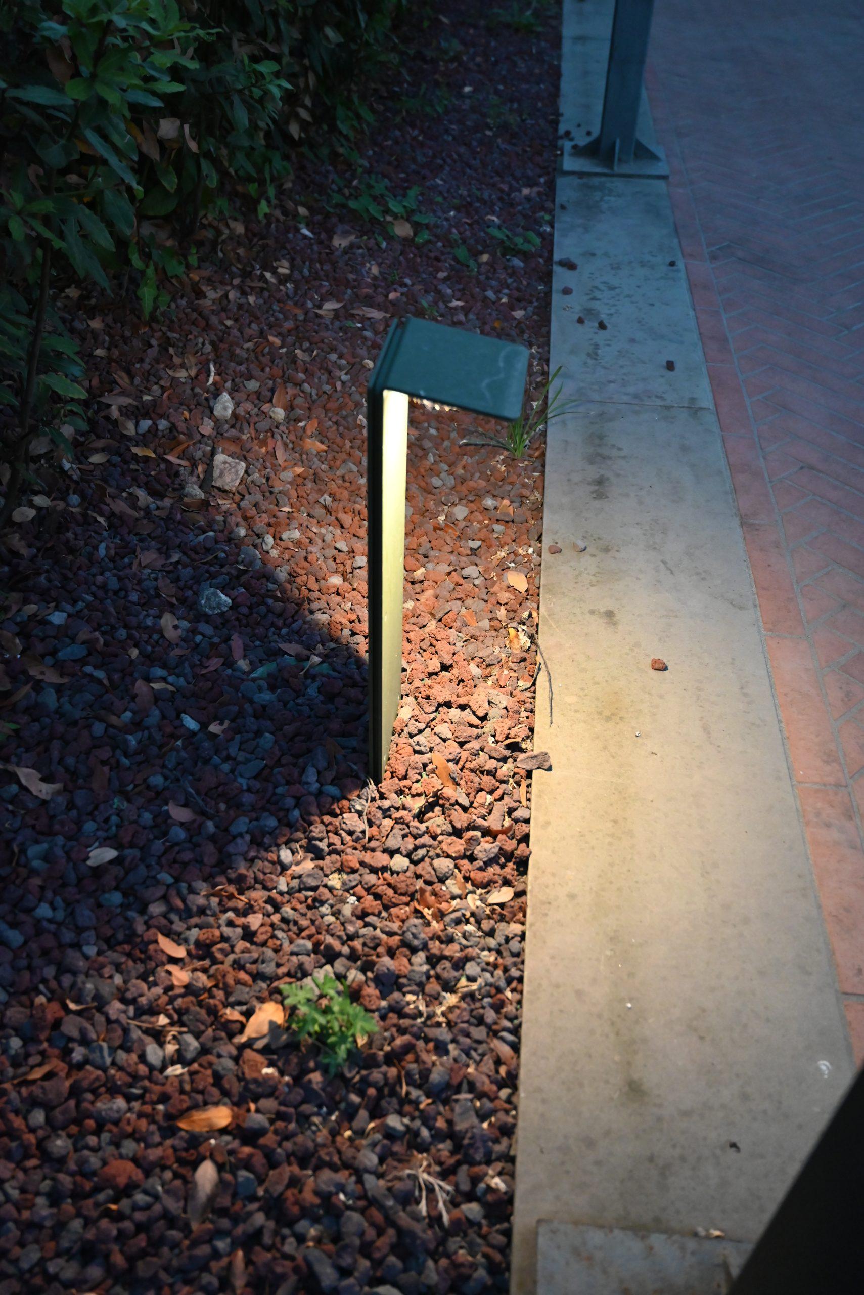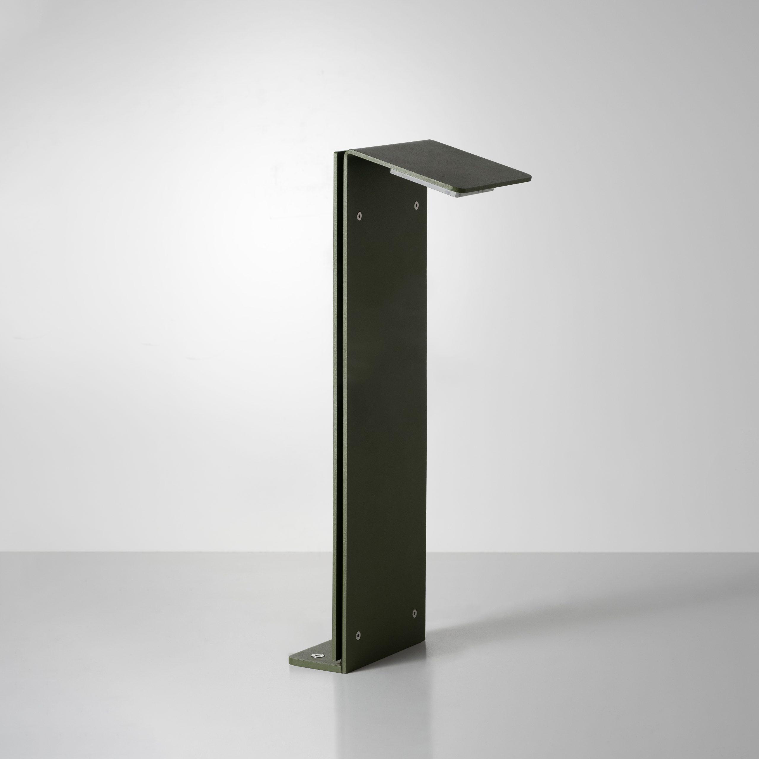Paletto luminoso LED da esterno con ottica monodirezionale o bidirezionale. Corpo lampada in alluminio verniciato ricavato da taglio laser e piegatura. Lente realizzata da monoblocco in PMMA trasparente e dissipatore interno in alluminio anodizzato nero.